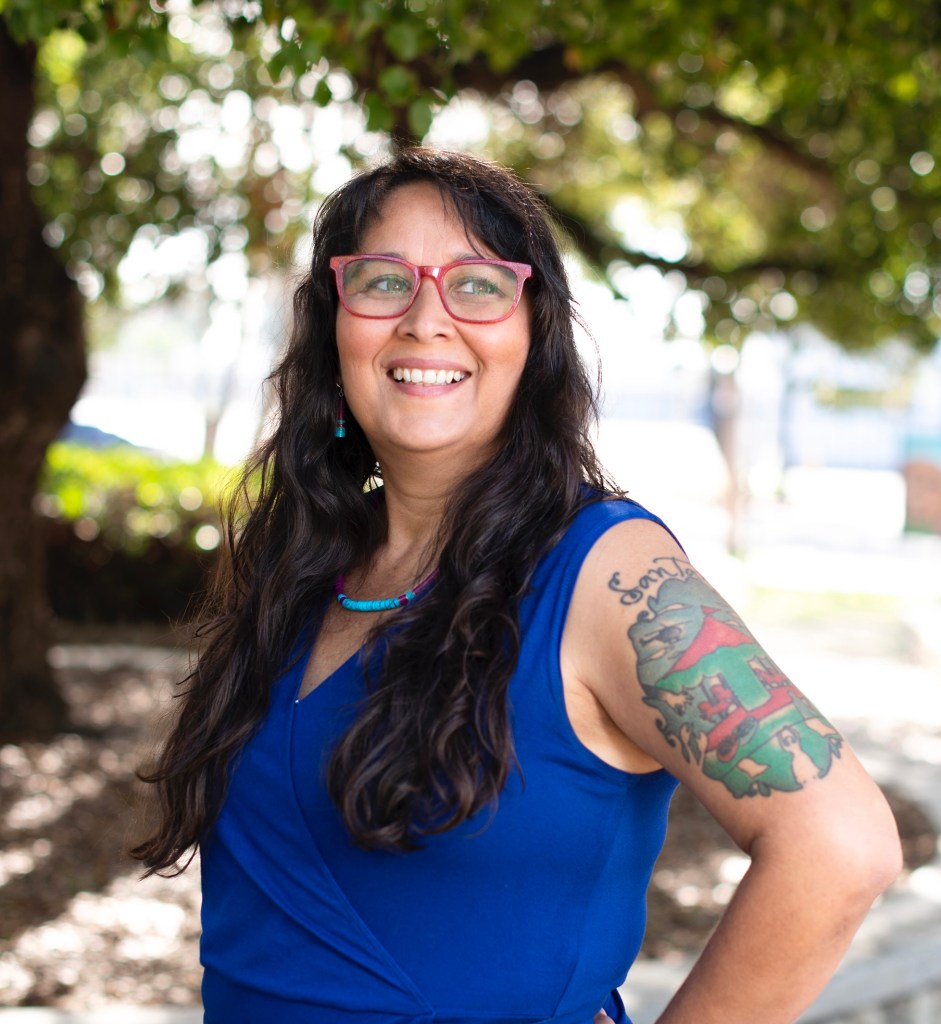 Sarah Rafael García is an award-winning Chicana author, multimedia artist, digital archivist, and literary arts advocate raised in Santa Ana. As a child of immigrants and a first-generation graduate, she knows what it means to fail and triumph in life. Her book, SanTana’s Fairy Tales, is part of an oral history multimedia exhibition awarded by the Andy Warhol Foundation, and a required Ethnic Studies text in the Santa Ana Unified School District. Her work in the digital humanities (DH) began as a 2020 USLDH-Mellon Grantee with the University of Houston US Latino Digital Humanities Center and includes virtual timelines, Mapping Santa Ana, the Modesta Avila archives, Womxn of Color at the Frontlines in OC, and Mapping BIPOC Bookstores, along with DH training for-and-by the community and Ethnofiction Through Contemporary Narratives in classrooms. García is the founder of LibroMobile Arts Cooperative and was the 2023-2025 Visiting Scholar of Creative Writing with the Latinx Lab at the CSUF Chicana/o Studies Department.